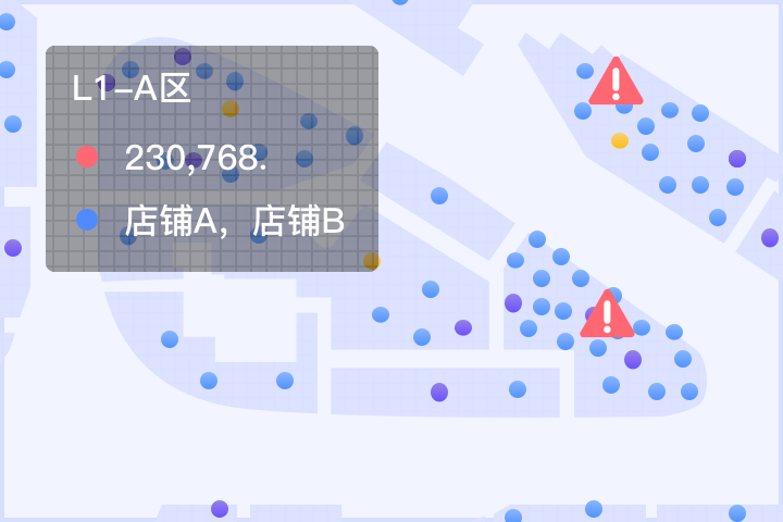 及分析商铺与商铺之间的人流量转化率以及交易数据,商场可根据此数据对铺位进行调整,提高商场的营业额